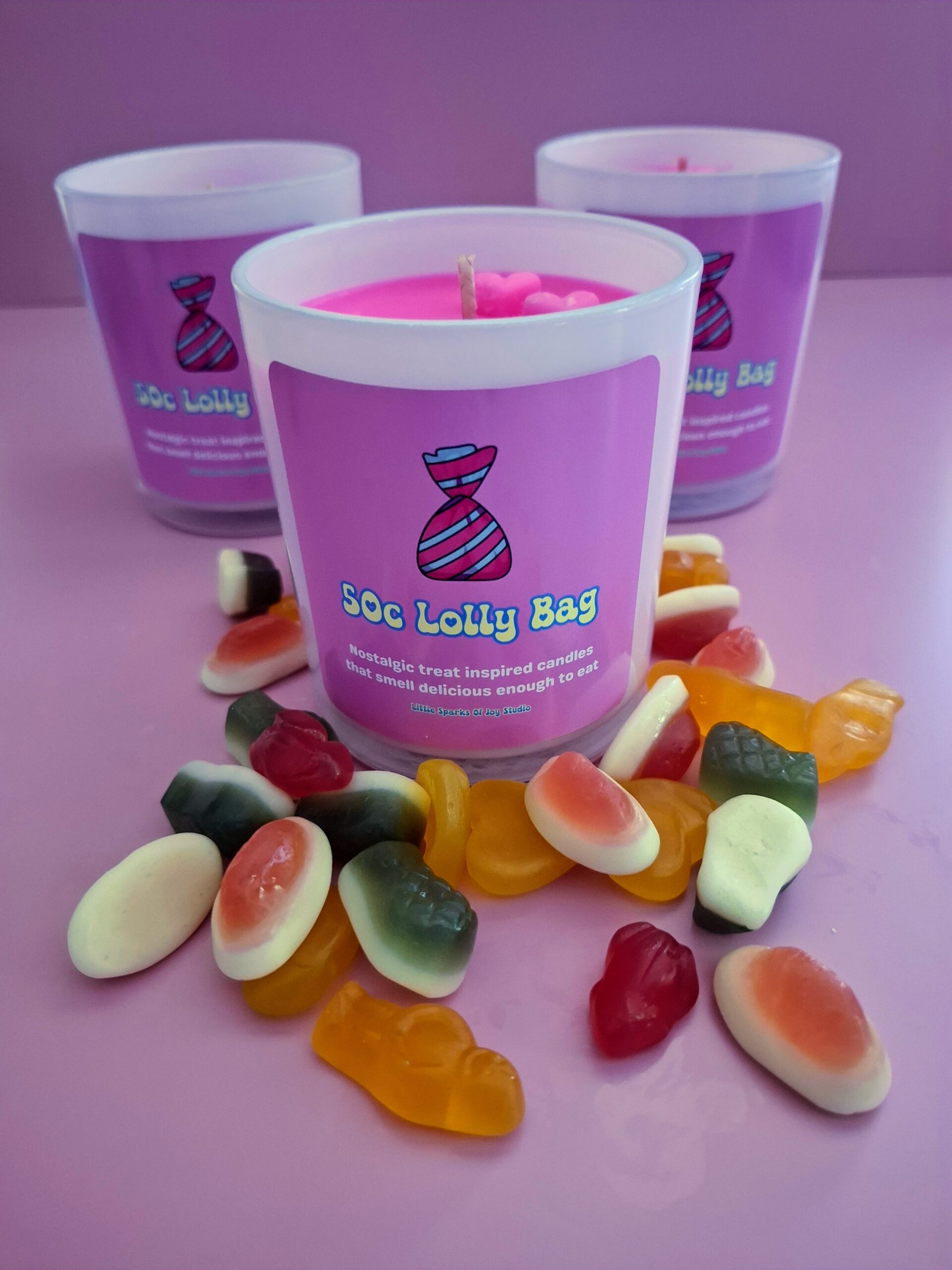 Smell is very closely linked with memory, I’m sure you can think of a time where you smelled something and it brought back such vivid memories. These candles are designed to remind you of lolly bags, blowing bubbles with bubblegum, eating sour worms, or ice cream on a summers day. They are designed to remind you that joy can be found, even in the smallest of places.